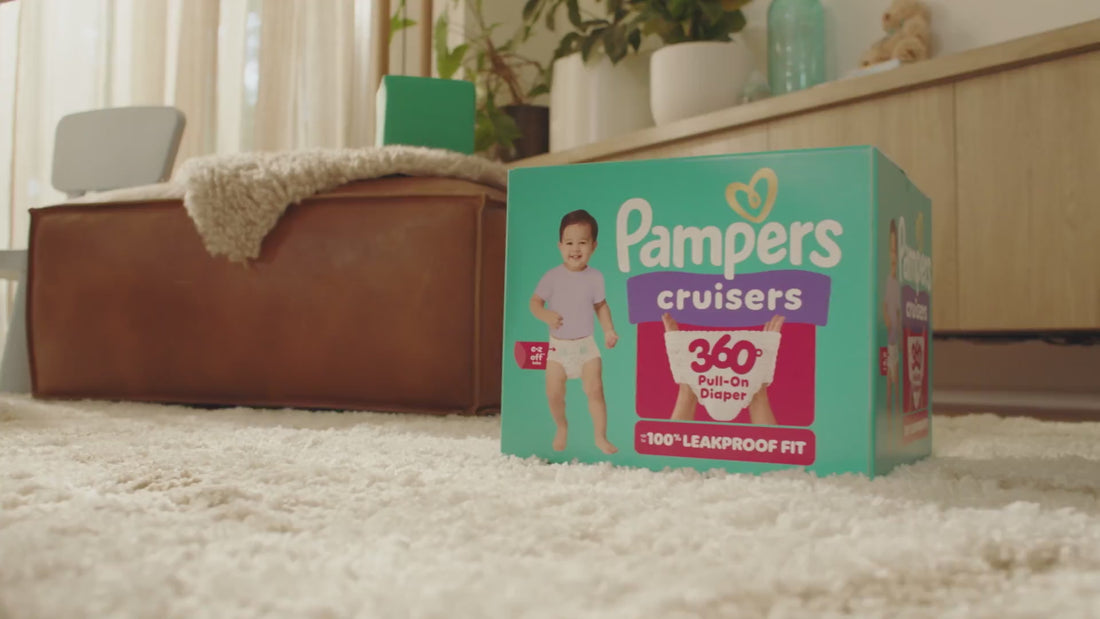 Pampers Cruisers 360 degrees is the Pull-On Diaper* designed for an active toddler's every move-now with EZ-off tabs for easy changes. Unlike ordinary disposable diapers that gap in the back, Pampers Cruisers 360 diapers stretch comfortably around your baby's waist and adapt to their every move for a flexible, Babyproof and gap-free fit that is up to 100% leakproof. From the Pediatrician Recommended Brand**, Pampers Cruisers 360 degrees feature a 360-degree stretchy waistband for a secure, Stay-Put Fit that moves with your baby through the crawling age, standing age, and all their wild adventures. EZ-off tabs make toddler diaper changes stress-free and mess-free-whether your toddler is lying down or standing up. Just tab off, wrap up, and pull on a fresh diaper pant. These pull on diapers are also hypoallergenic, dermatologically tested, and free of parabens and latex***, giving you trusted protection and comfort. Plus, Dual Leak-Guard Barriers help prevent up to 100% of leaks-even blowouts. Pair with Pampers Ultra Clean Baby Wipes to help make every change quick and clean. *Based on 52-week Nielsen volume sales of pull-on disposable diapers **Based on 2021 survey of U.S. and Canadian pediatricians *** No natural rubber